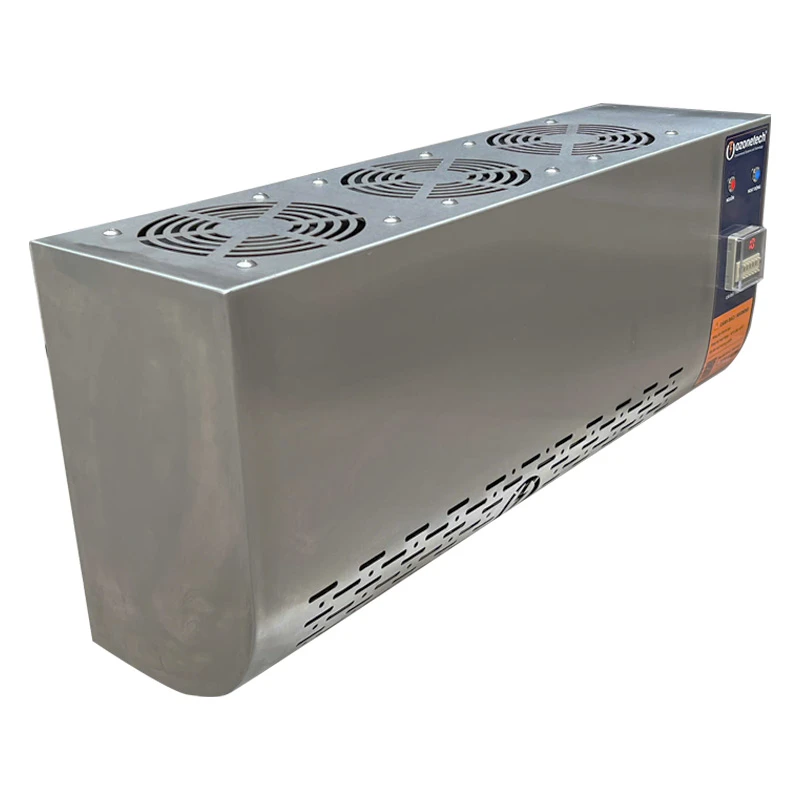 • Chạy chu kỳ ngắt quãng công suất thấp ngoài giờ cao điểm; bắt buộc có cảm biến O₃ tự động cắt máy để giữ nồng độ môi trường thấp hơn ngưỡng cho phép (khuyến nghị ≤ 0,05–0,1 ppm trong khu vực có người).