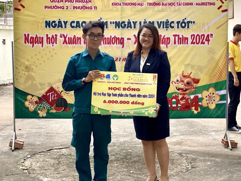 19/04/2024 Hưởng ứng Phong trào ” Ngày làm việc Tốt” – Trao Học Bổng Hỗ trợ học tập toàn phần cho thanh niên năm 2024 UBND phường 2 và Phường 11 kết hợp cùng Khoa Thương mại Trường Đại học Tài Chính- Marketing tổ chức chương trình…